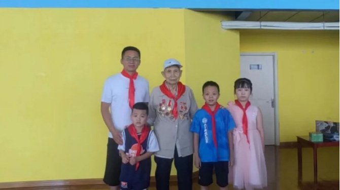 8月2日,頤信養(yǎng)老黨支部成員來到團結(jié)西路社區(qū),與退伍老兵們重溫軍人入伍誓詞,并帶領(lǐng)社區(qū)兒童聆聽他們的故事。退伍老兵馮博用最質(zhì)樸的語言分享了曾經(jīng)軍旅生涯難忘事跡,促使新一代社會主義接班人感受艱苦卓絕的革命歷程,深刻領(lǐng)悟軍人們不屈不撓、艱苦奮斗的革命精神和高尚情操,為兒童們樹立人生榜樣,培養(yǎng)遠大理想和堅定信念。最后,孩子們?yōu)橥宋槔媳灰凰蜕狭思t領(lǐng)巾與誠摯的祝福,爺爺們微顫卻標準的軍禮、溫暖而寬厚的笑容,令在的孩子們無不為之動容,這也是老一輩和新一代之間的精神傳承。